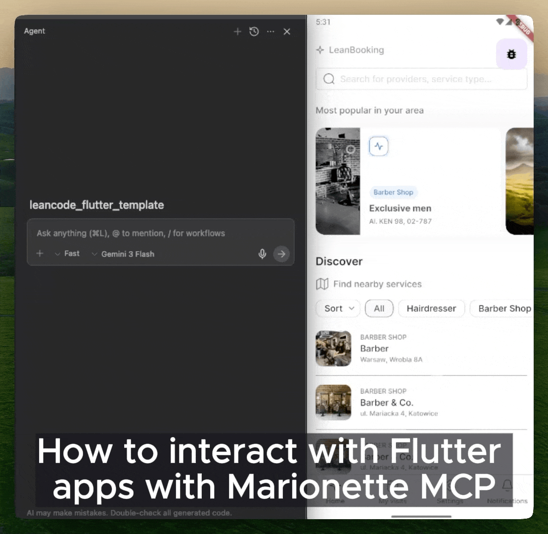 Marionette MCP bridges the gap between AI coding assistants and running Flutter applications. It provides a Model Context Protocol server that lets AI agents see your widget tree, interact with UI elements, and capture screenshots — all in real-time.